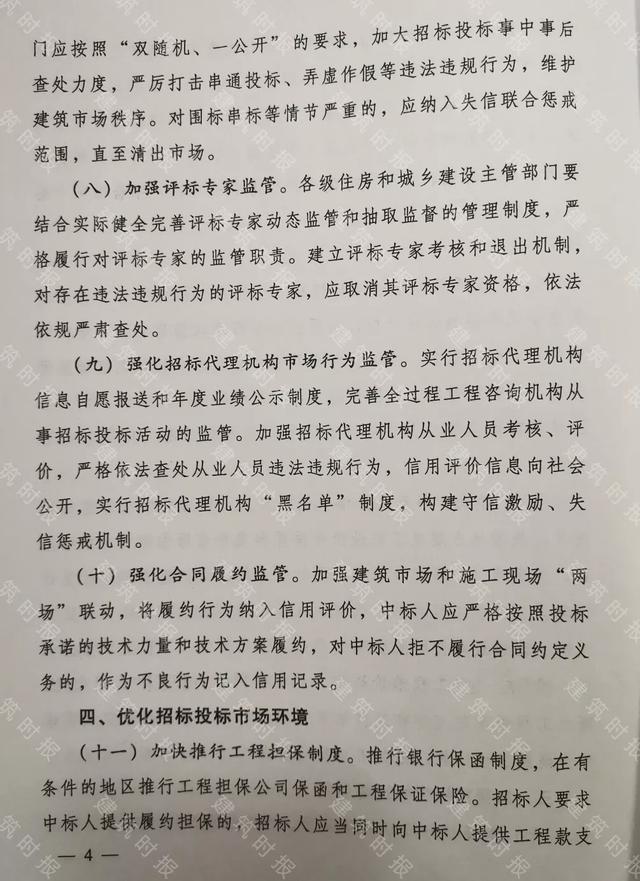 《意见》从四个方面对加强房屋建筑和市政基础设施工程招标投标监管提出了具体措施: