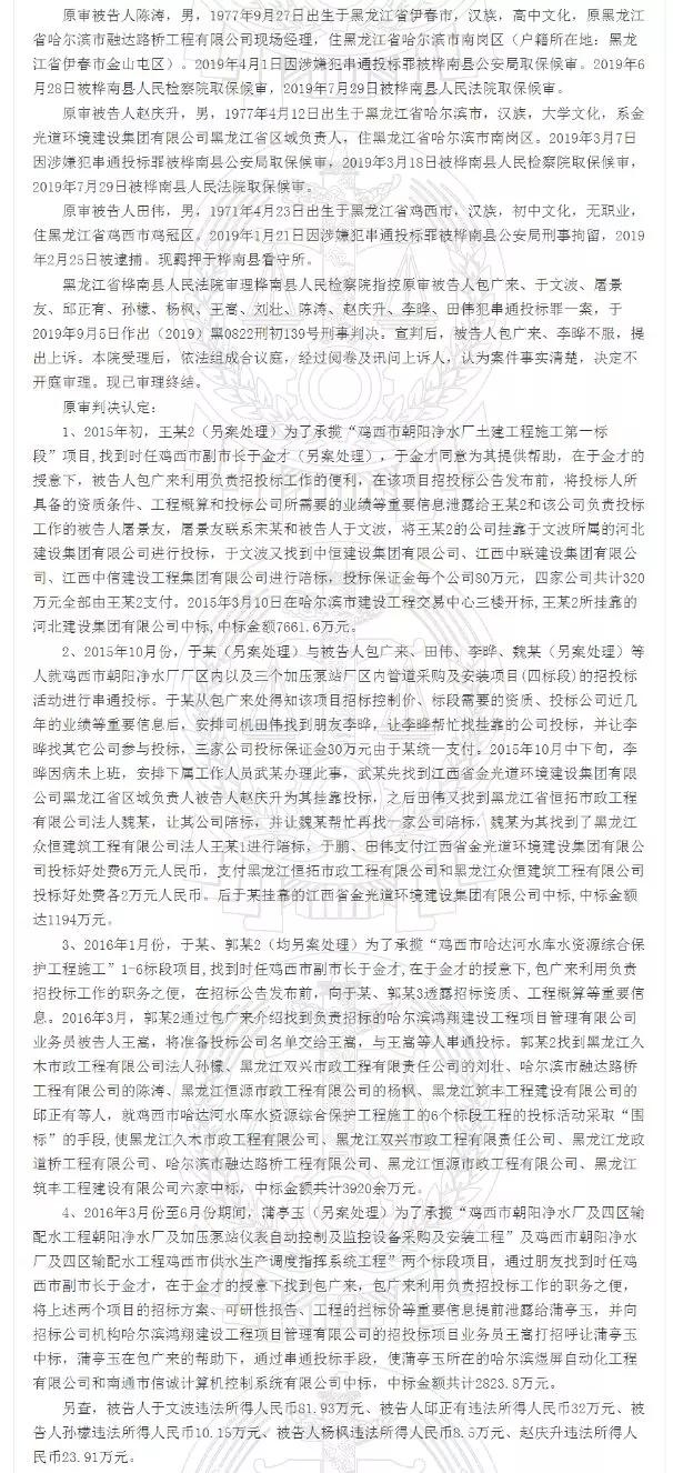 工程建设处副主任利用职务便利,串通多家建筑公司在5个项目串标,工程总金额达1.56亿。此外,此案还牵涉时任鸡西市副市长于金才、H股上市公司河北建设分公司高管、十多个被告人以及数个建设工程公司。
