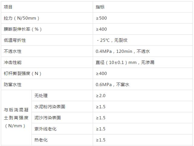 地下工程采用预铺反粘防水技术,材料是关键。“预铺反粘”采用的材料是高分子自粘胶膜防水卷材,该卷材系在一定厚度的高密度聚乙烯卷材基材上涂覆一层非沥青类高分子自粘胶层和耐候层复合制成的多层复合卷材,其特点是具有较高的断裂拉伸强度和撕裂强度,胶膜的耐水性好,一、二级的防水工程单层使用时也可达到防水要求。