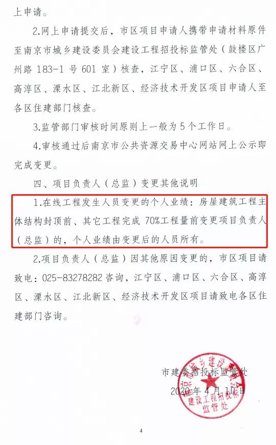 日前,南京市建委发布《关于明确项目负责人(总监)变更有关事项》的通知。