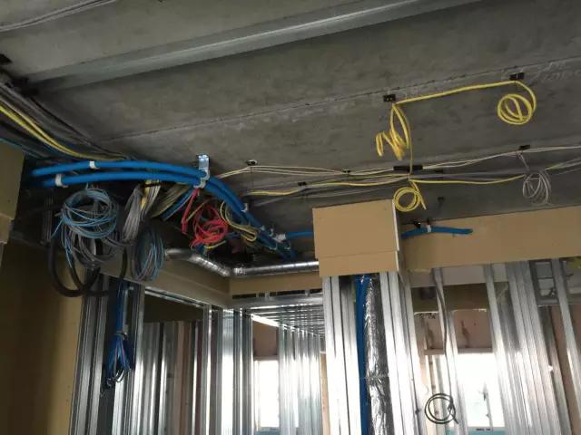 线路铺设到第四层时,第一层的精装修就进场施工了。