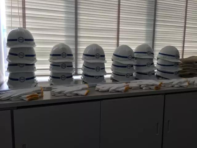 在进入工地前,考察人员被要求换上统一的工装,并戴上头盔。这些真的不算什么,他们在前一天晚上还临时去商场买了工装鞋。