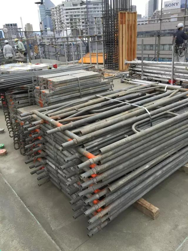 工地一个显著的特点就是无处不在的各类收纳箱——从各类专用的施工材料,到辅助施工的辅助用具,甚至各类不同的废弃废料等,都可以在施工现场找到其专门安置的收纳箱。这也得益于日本人高度的环保意识和物尽其用的节约理念,使施工现场各类材料做到井然有序。