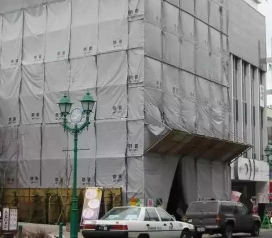 这是东京银座的一处施工现场,被包得严严实实,紧挨着的是一个商场。估计日本人也不用担心PM2.5这回事。