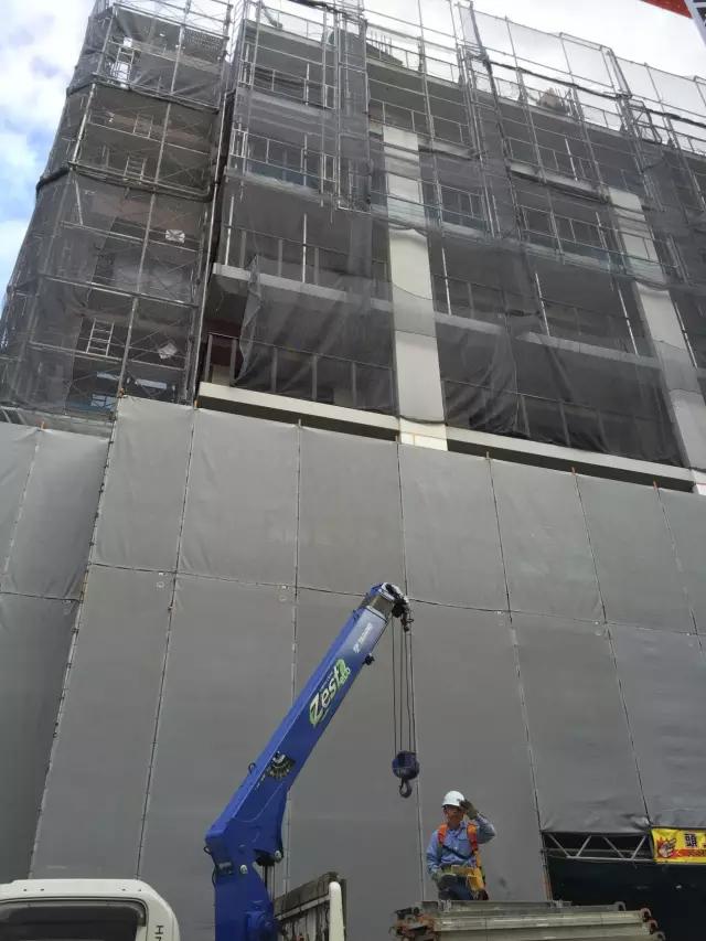 为了防止扬尘,施工时每往上搭一层,就包装一层。