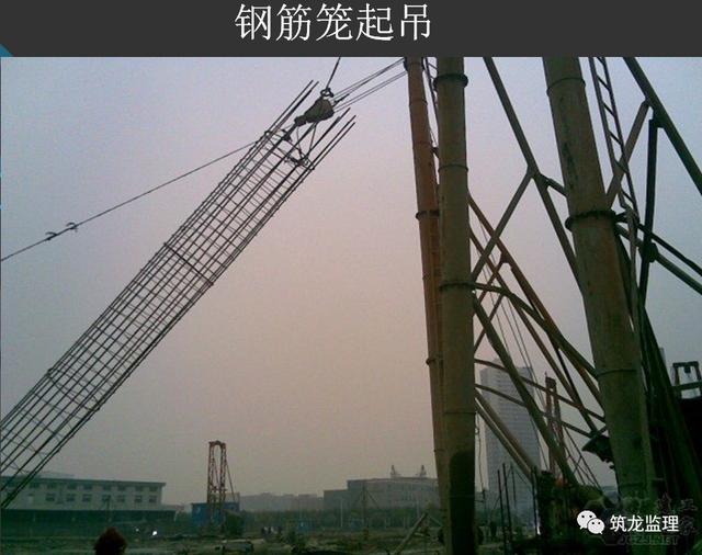 钢筋骨架可采用钻机塔架、扒杆或起吊机吊起,对准护筒中心缓慢下放至设计标高。