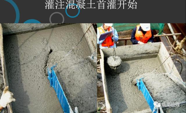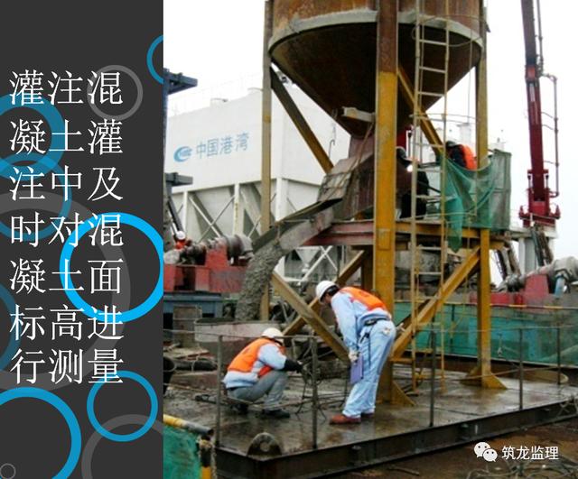 11、浇筑水下混凝土由项目部质检人员及监理工程师进行旁站,旁站过程中应严格控制灌注时间、首批混凝土方量、导管长度与灌注混凝土面深度,并对每车灌注完后及时量测孔深。