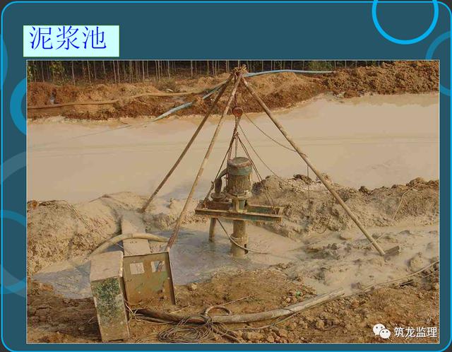 正循环是用泥浆泵将泥浆以一定压力通过空心钻杆顶部,从钻杆底部喷出,底部的钻锥在旋转时将土壤搅松成为钻渣,被泥浆悬浮,随泥浆上升而溢出流至孔外的泥浆槽,经过沉淀池中沉淀净化,再循环使用。