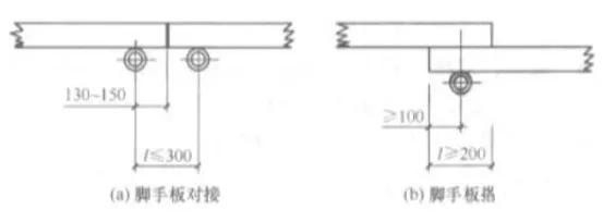 ▲脚手板对接/搭接构造