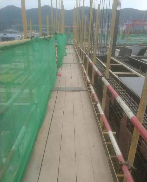▲脚手板未满铺、未板扎