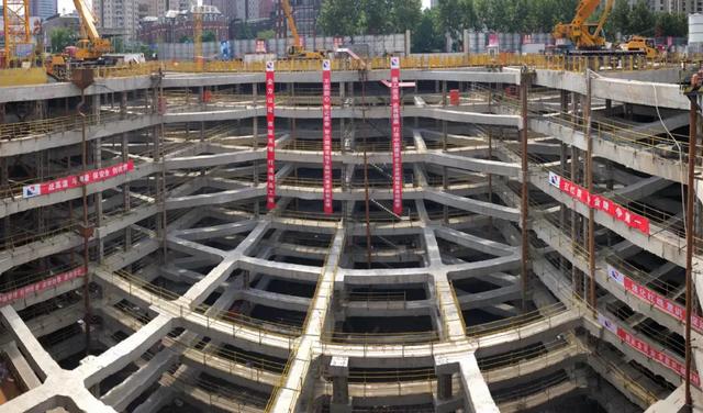 上海建工总承包部协同一建集团在近500天时间里夜以继日努力拼搏,先后完成了5个分区近3.4万平方米超深基坑,总土方量达110万立方土方的挖运,日平均出土量近3000立方,这在闹市中心深基坑土方施工中是极少见的。