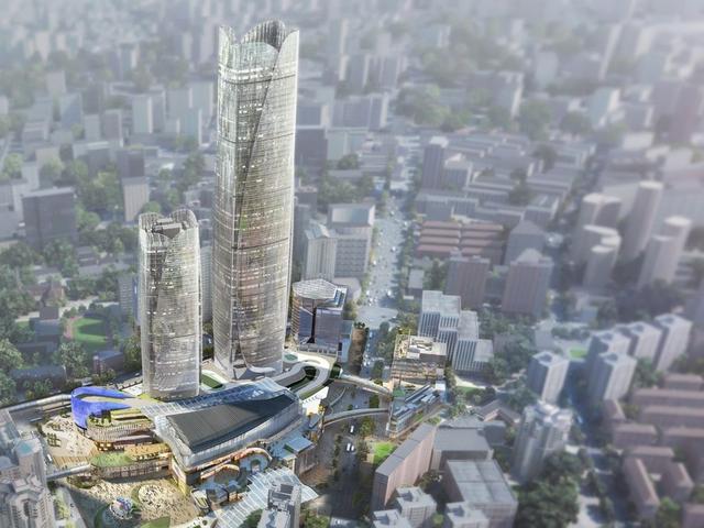 徐家汇中心项目位于徐家汇商业圈核心地段,邻近地铁站、商业楼以及居民区的徐家汇中心项目,总建筑面积约95万平方米,其中虹桥路地块分别由两栋为70层、43层的超高层主楼,15层酒店、7层裙房以及6层地下室构成。主要功能为商业办公一体化综合体。该项目由新鸿基地产投资建设、上海建工总承包、并由建工总承包部组织实施。项目建成后,将取代320米高的北外滩白玉兰广场,成为“浦西第一高楼”,为申城上海增添又一道靓丽的天际线。