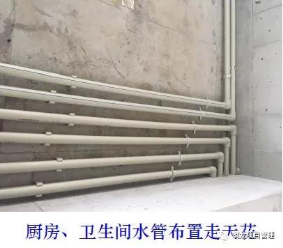 厨房、卫生间水管布置走天花;