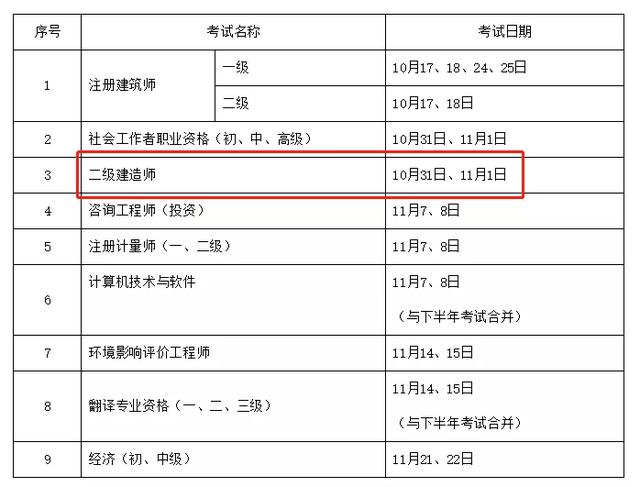 目前为止,陕西、四川、福建都已明确二建考试时间为10月31日、11月1日。