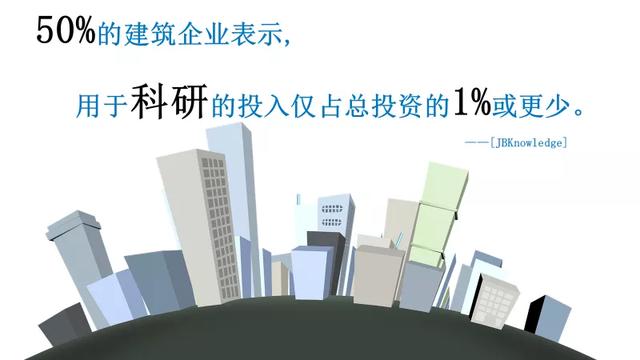 50%的建筑企业表示用于科研的投入仅占总投资的1%或更少。[JBKnowledge]