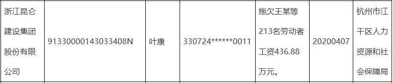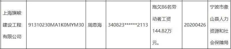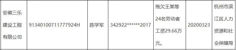 2020年第二批拖欠工资“黑名单”信息(建筑领域):