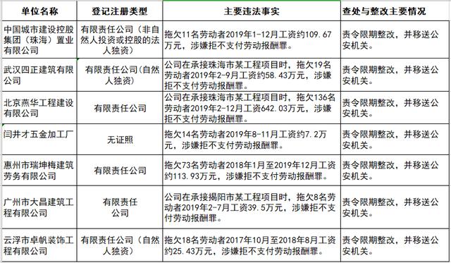 近日,全国多地通报2020年第二批拖欠农民工工资“黑名单”和重大劳动保障违法行为。