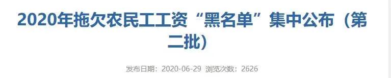 2020年拖欠农民工工资“黑名单”集中公布(第二批)(建筑领域):