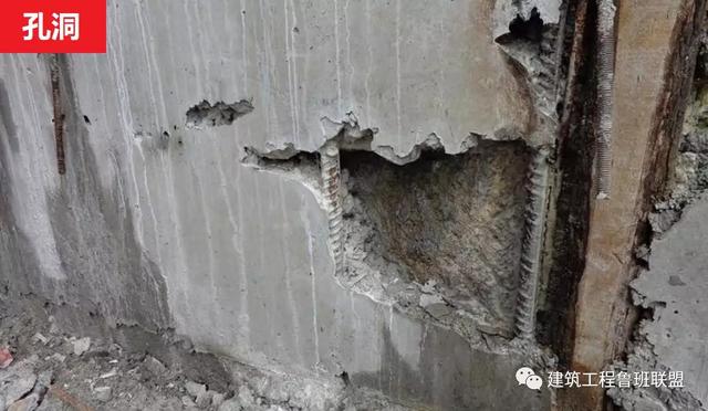 孔洞是指混凝土结构内部有尺寸较大的空隙局部没有混凝土或蜂窝特别大,钢筋局部或全部裸露。