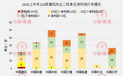 2020年上半年,中国建筑、中国中铁、中国铁建、中国交建、中国电建、中国中冶、中国化学这七家建筑央企均公布了旗下二级子公司(全资+控股)的净利润情况,披露的子公司达 220家,比2019年多了8家子公司。