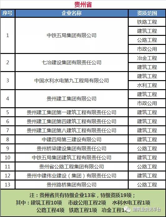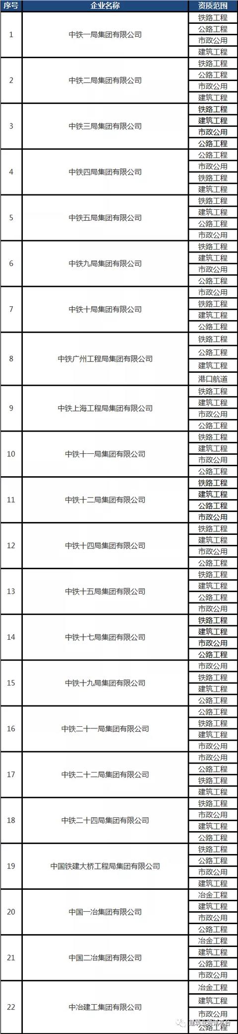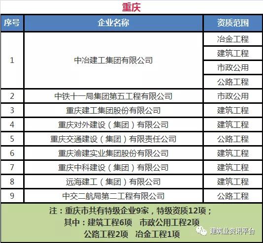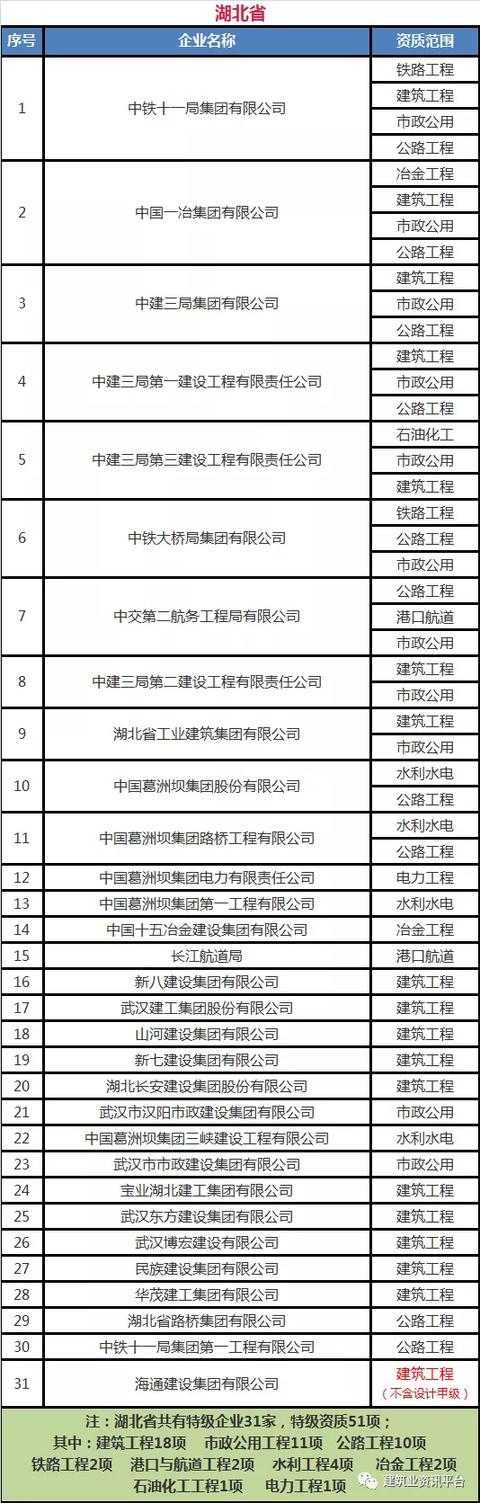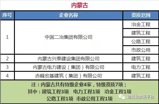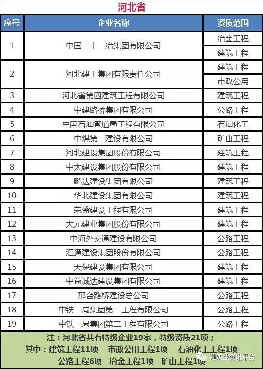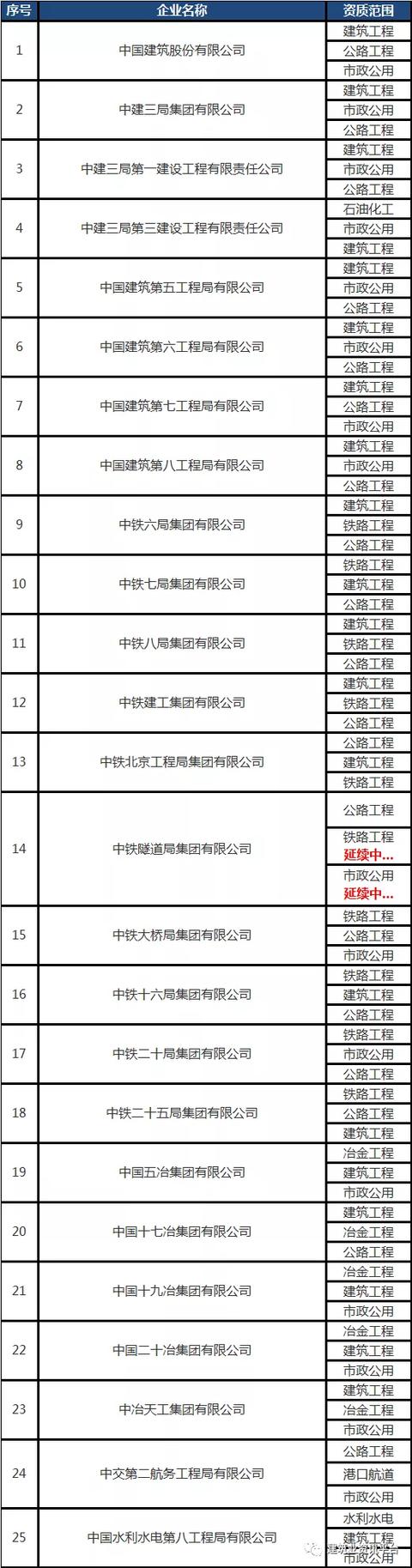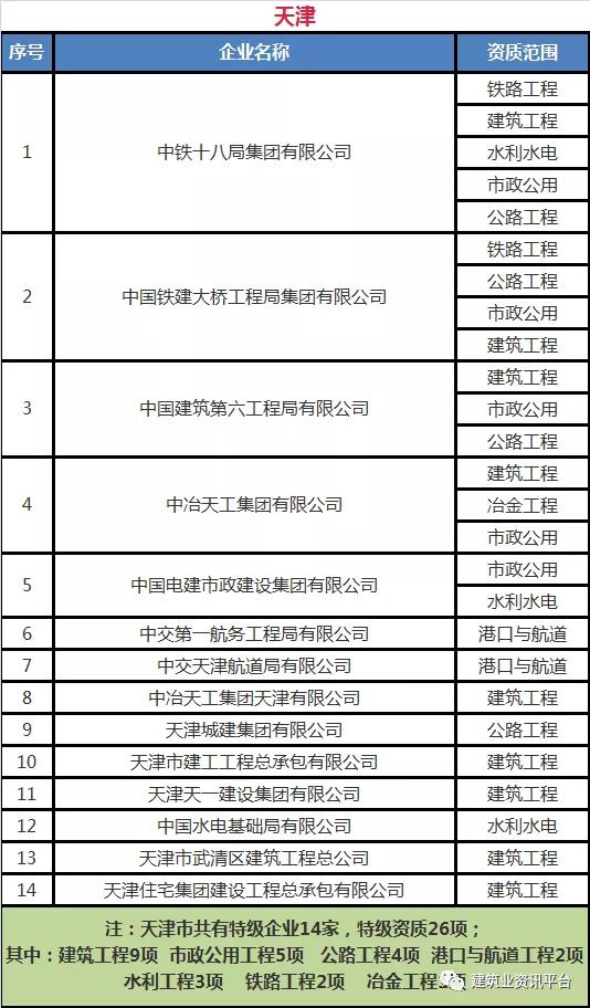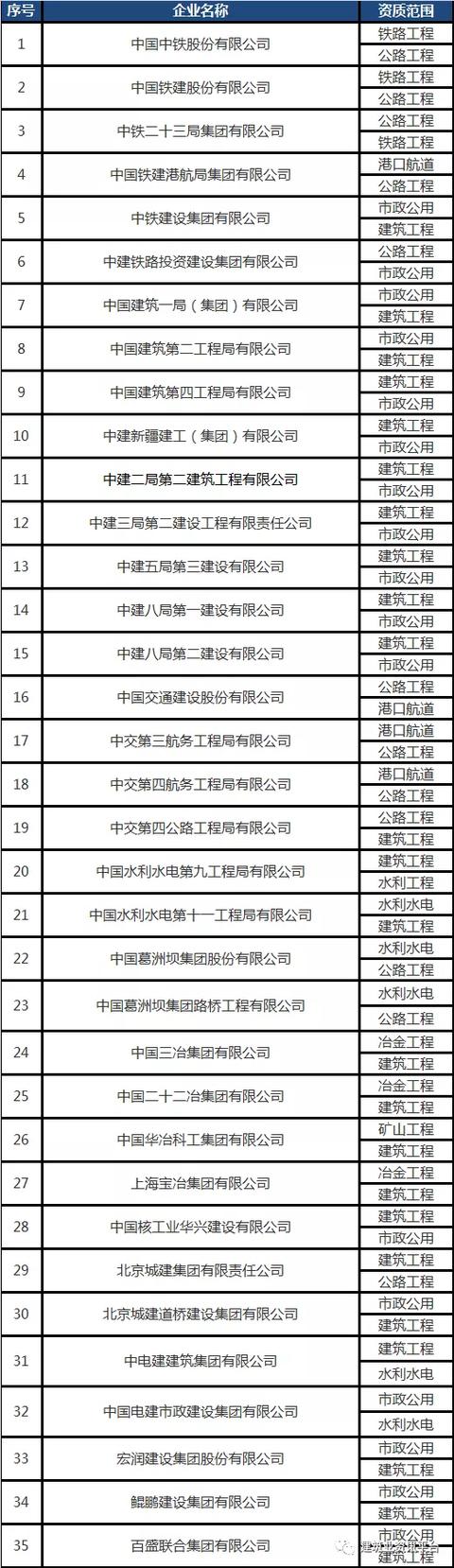 下面带大家盘点一下那些拥有总承包特级资质的企业名单: