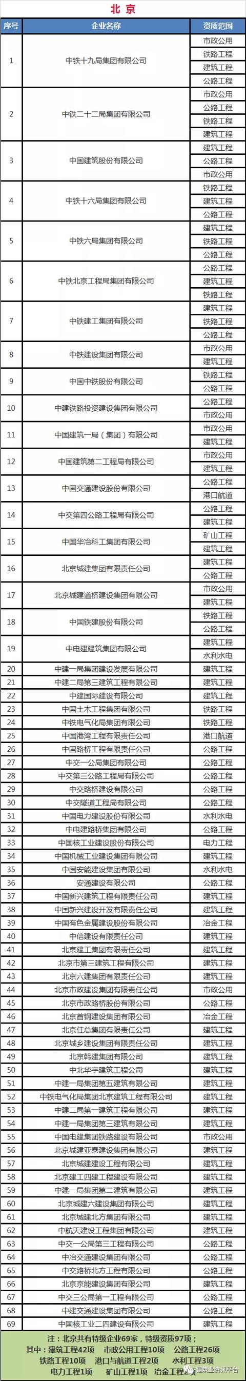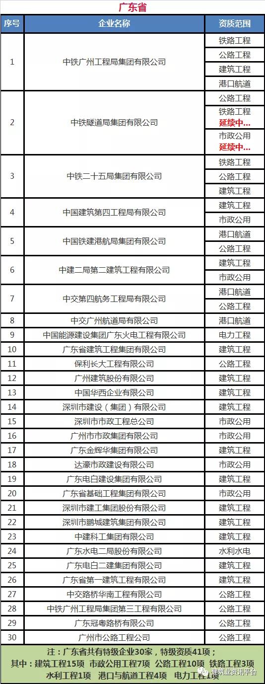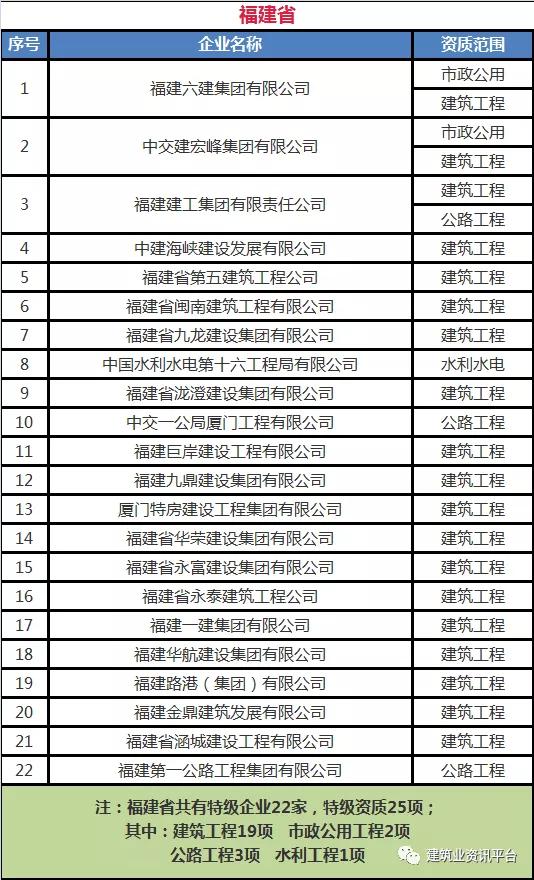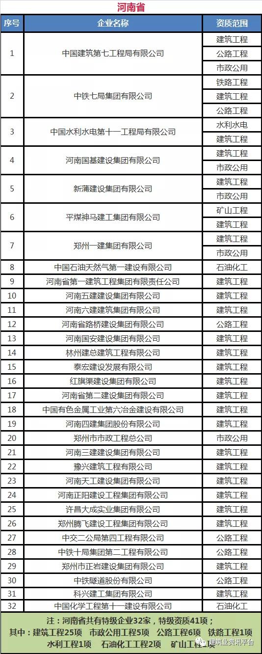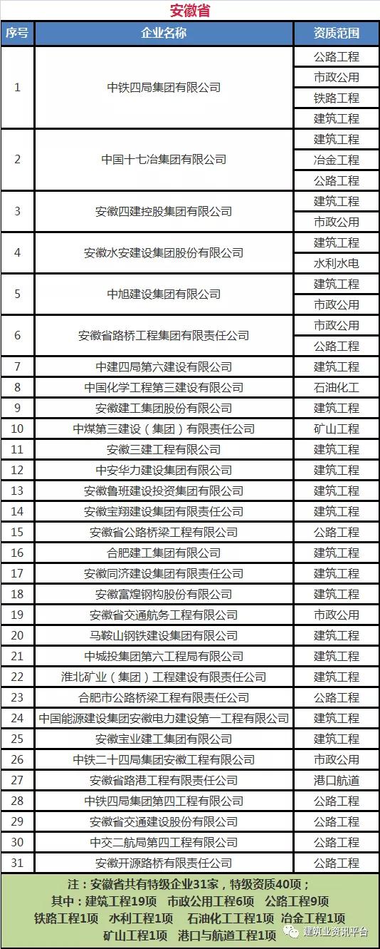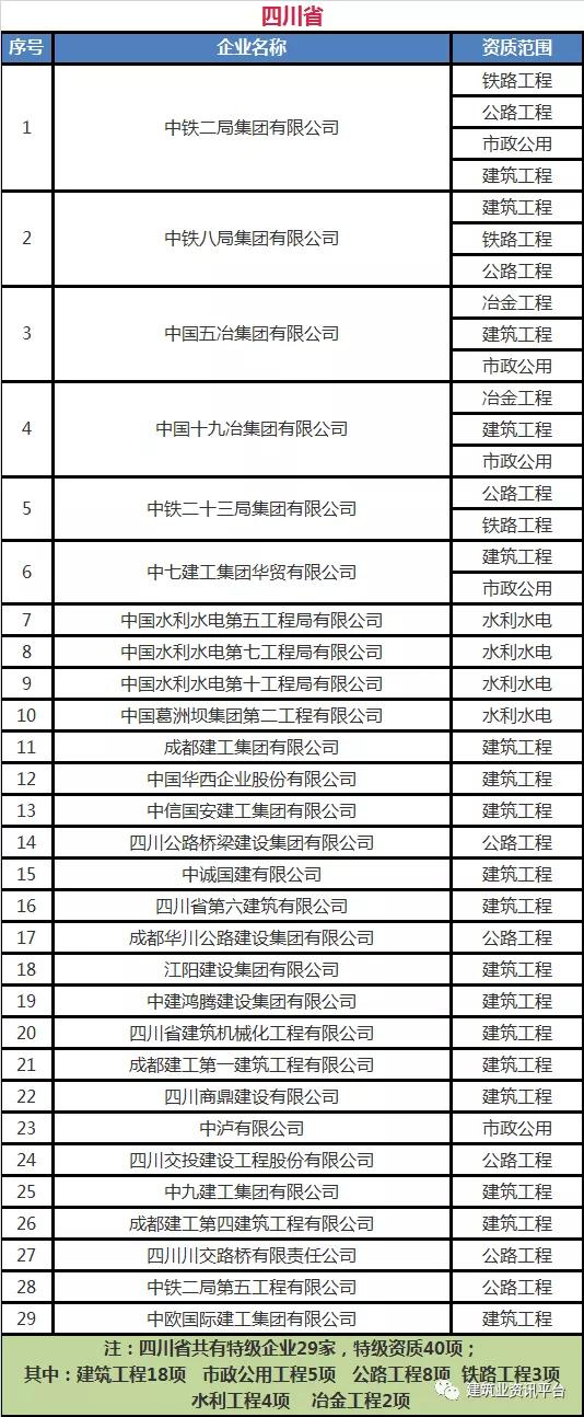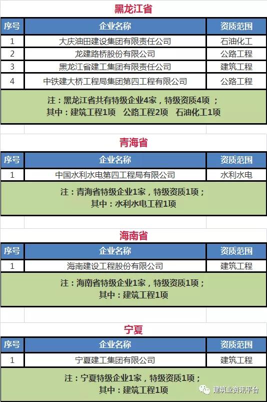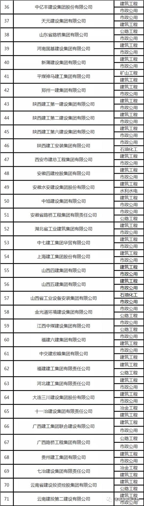 下面带大家盘点一下那些拥有总承包特级资质的企业名单: