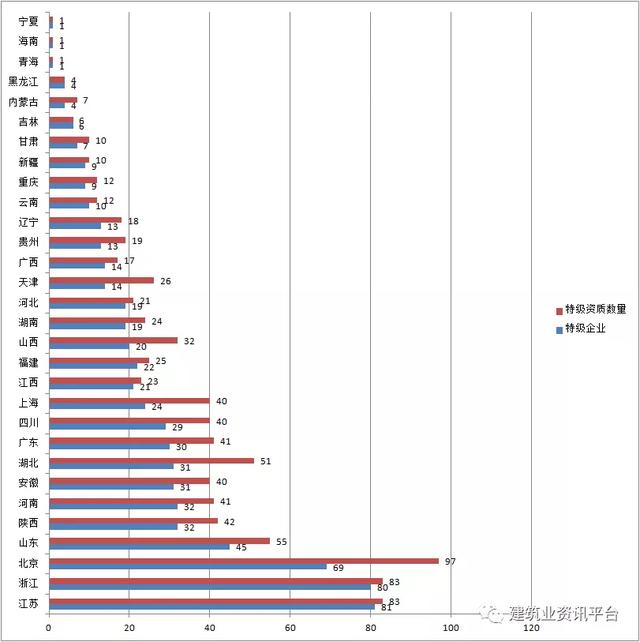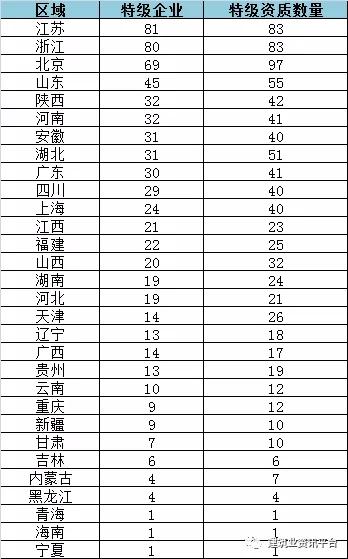 特级资质作为资质序列中的最高等级,不仅体现一个企业实力,其所在区域的数量也从一个角度,直接折射出该区域的建筑行业强弱。