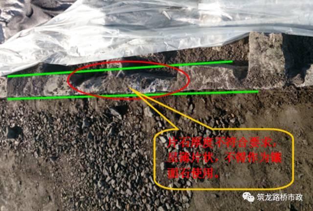 1.2 片石:厚度不小于150mm,不得采用裂纹、风化石、山皮石。片石要有平整面,棱角分明。不得采用无棱角,尺寸超小,薄片状,浑圆状石料。用作镶面的片石,表面要大致平整,边角方正,厚度不小于15cm,达不到要求的要进行加工修饰。