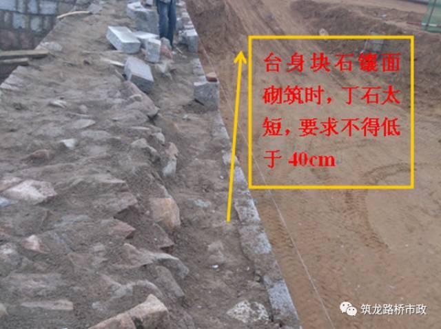 2.5 每层砌筑时,采用两顺一丁的砌筑方法。片石丁石长度不得小于30cm;块石丁石长度不得小于40cm。