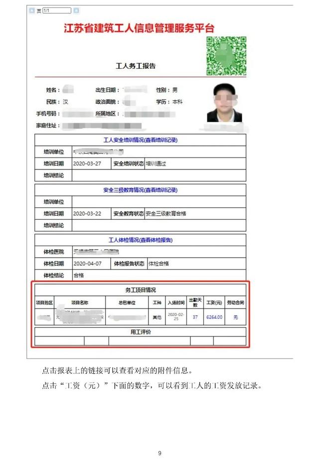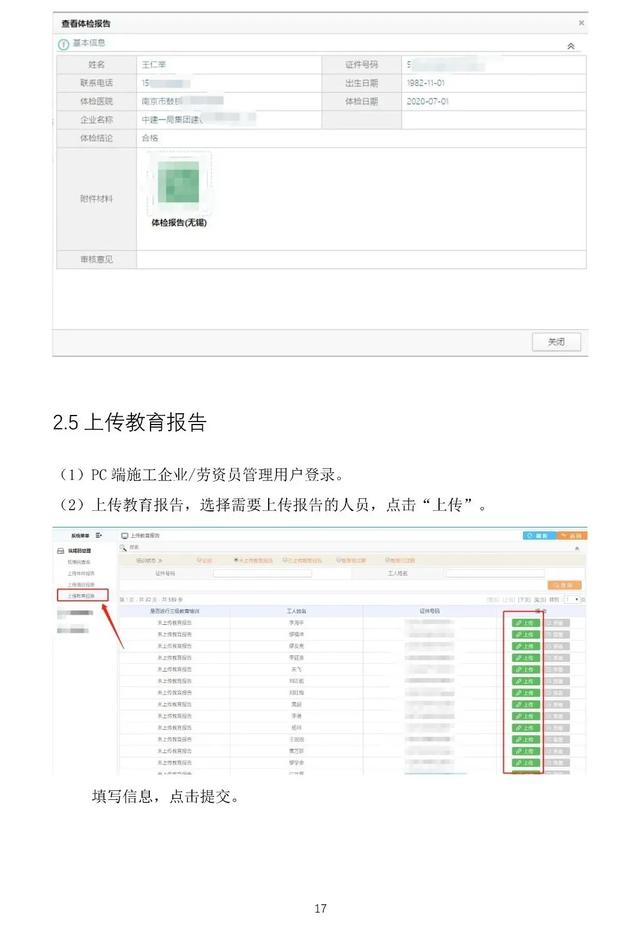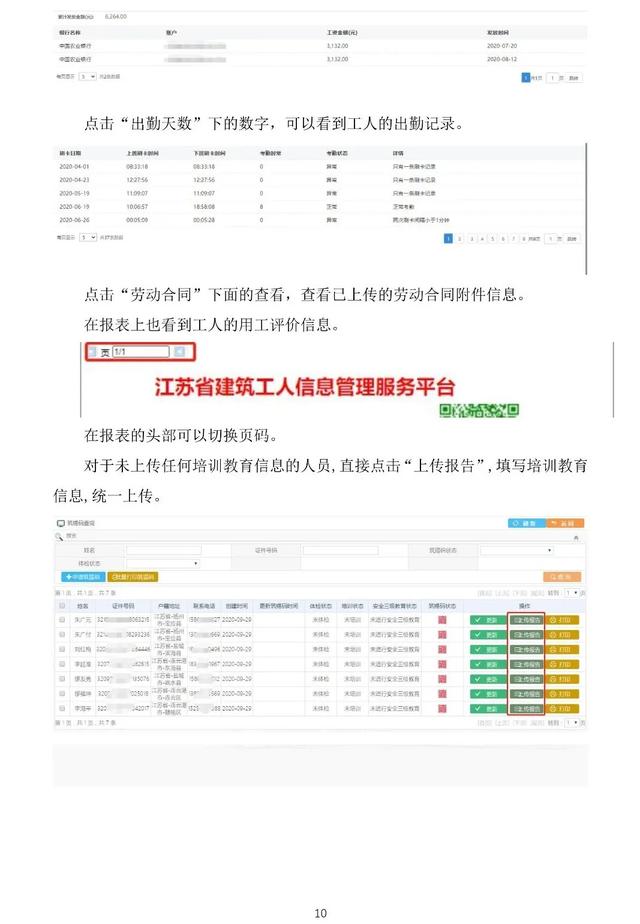 建筑工地由施工总承包单位负责,落实将新聘用的和已在锡务工的从业人员的教育培训记录(记录样表可参照附件1、附件2)和体检报告录入“江苏省建筑工人管理服务信息平台(无锡)”(以下简称“实名制系统”),申请“筑锡”二维码工作,具体申请操作流程详见附件3。“筑锡”二维码实行绿、黄、红三色动态管理。年龄在18至60周岁且经过教育培训合格和体检合格的从业人员,申报可自动获取绿色“筑锡”二维码。教育培训记录或体检报告到期前1个月内,“筑锡”二维码为黄色,由施工总承包单位组织从业人员参加培训或体检,取得相关记录报告并录入实名制系统后,“筑锡”二维码恢复为绿色。从业人员教育培训记录或体检报告超过1年有效期限,“筑锡”二维码为红色,建筑工地实名制通道关闭,人员不得进入施工现场,不纳入工资支付名单范围。