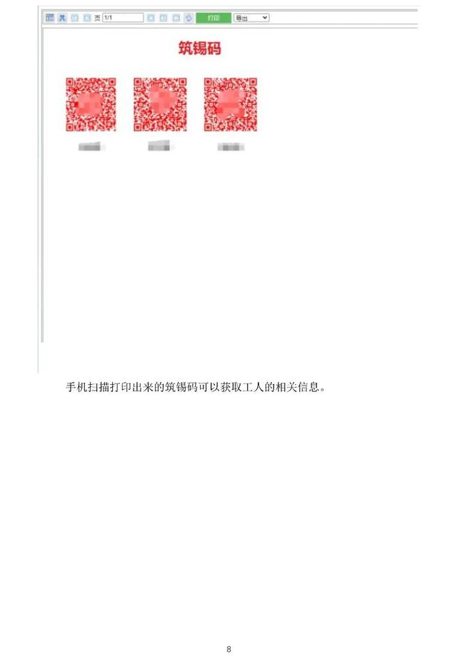 4、加强核查。施工总承包单位负责将“实名制系统”内从业人员“筑锡”二维码打印并粘贴与安全帽后侧中间位置,现场管理人员通过手机端加强对“筑锡”二维码的动态核查,确保全覆盖。