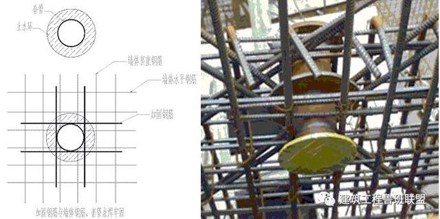 穿越地下室采用刚性防水套管时,与钢筋焊接固定,切断钢筋处需加强补焊钢筋,加固处理。