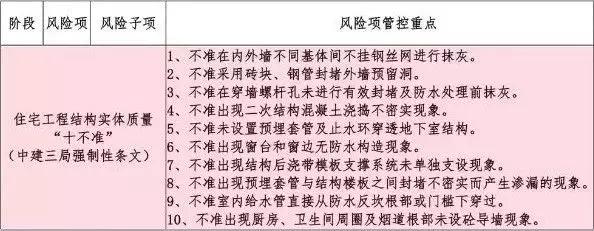 中建作为行业老大哥,在质量管理方面也起着示范表率作用,中建三局在住宅工程项目中梳理了易出现的质量通病和风险项,作为质量管控的强条,总结为住宅工程结构实体质量“十不准”,这也是做好工程的基础,朋友们可参考实施!