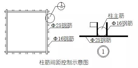 柱钢筋尺寸定位采用制作的柱筋定距框的方式进行,上下各设一道。