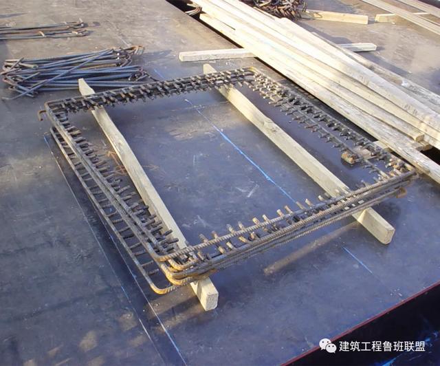 楼板钢筋定位采用制作钢筋马镫的做法,不同厚度、不同规格的楼板制作不同的钢筋马镫。