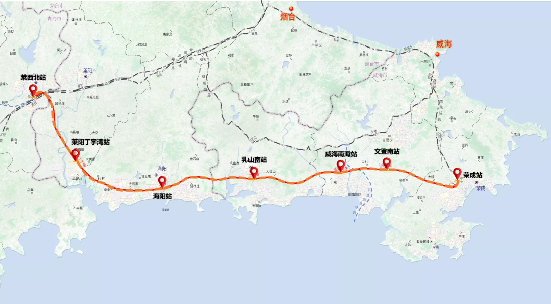 项目概况:莱荣高铁是青银高铁通道向山东半岛地区的延伸,线路西起青岛莱西市,经烟台莱阳市、海阳市,威海乳山市、南海新区、文登区至荣成市。正线长193公里,总投资297亿元,设计速度350km/h,全线设莱西北、莱阳丁字湾、海阳、乳山南、威海南海、文登南、荣成7站。莱荣高铁项目于今年4月29日获省发改委可研批复,8月31日获省交通运输厅初步设计批复。