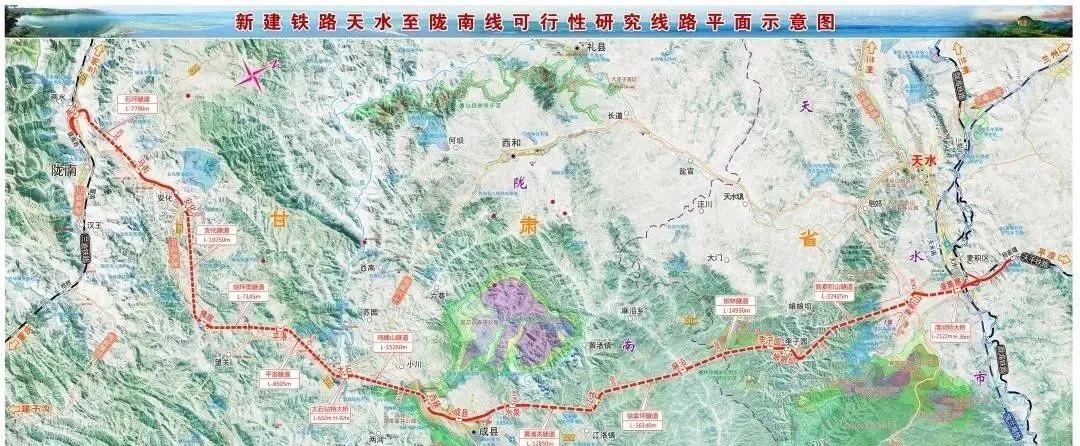 天水至陇南铁路是甘肃省“十三五”铁路规划建设项目之一,是甘肃铁路网的重要组成部分,位于甘肃省东南部的天水、陇南两市境内。新建正线线路长215.258km,其中天水市境内59.248km,陇南市境内156.010km,全线桥隧比90.76%,全线设车站17座,其中新建车站15座。按国铁Ⅰ级,单线160km/h设计,投资估算总额,建设工期5年半。