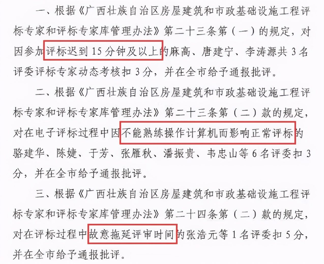 4、评标时迟到、递纸条、算错数……24人被通报,8人暂停评标一年!