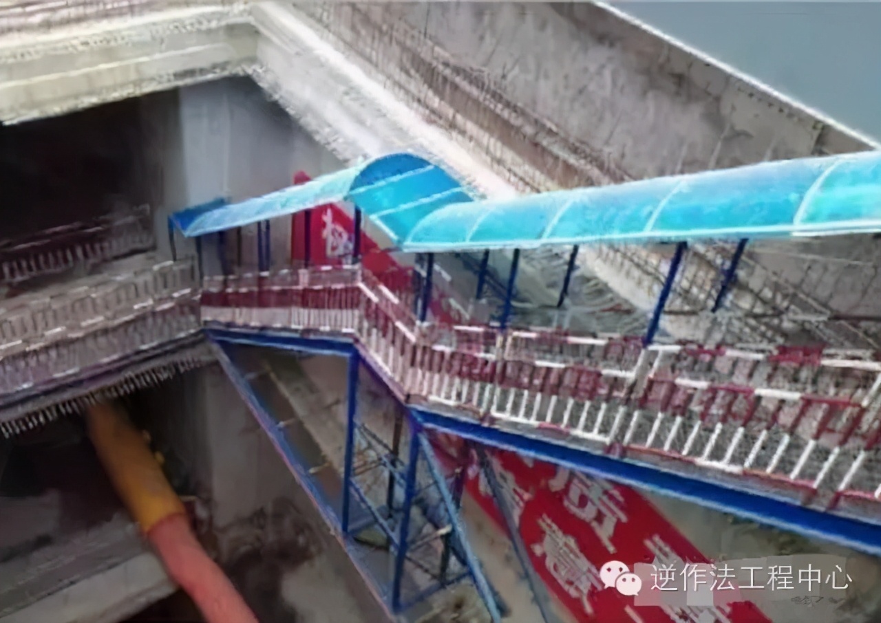 别以为车站开挖完成就告一段落啦,结构施工中也要秉承:做人有事有终,做事有头有尾。车站结构施工工程也要标准化施工,预留洞口,这可是地下世界通往光明世界的枢纽,醒目醒目再醒目就没有错啦。预留洞口临边安全防护多采用格栅式防护栏杆、红白油漆是标配,悬挂安全警示标志也是必备。