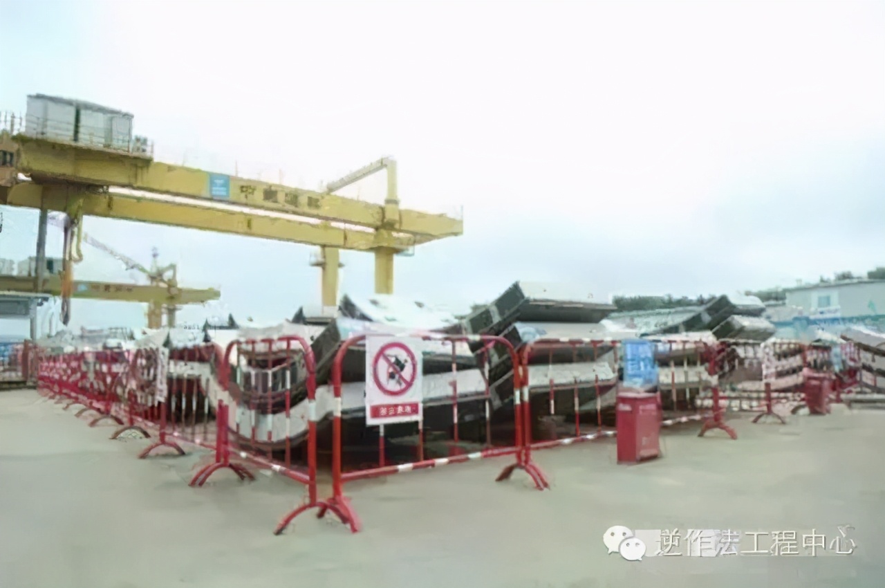 这就是地铁施工的“大仓库”了,为了正规有序的管理,“大仓库”的标准化一定要做的非常细致哦。管片存放场地需平整硬化,根据管片堆码顺序画好地面标志线。管片必须堆放在柔性基座(可采用150mm×150mm×1000mm 方木)上,重叠数量不多于3 块,管片间的垫木上下一致。做到堆场高效利用、管片堆放整齐划一,是不是像阅兵式?