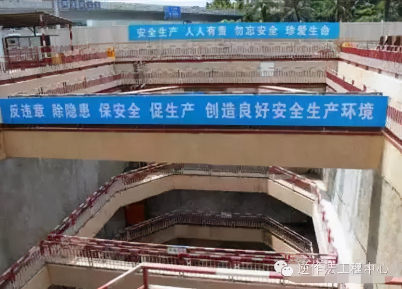 连续墙保护着进行约200m长的大型基坑开挖时,需要在基坑壁加上水桶粗的钢支撑,水平、垂直距离每隔3m一道,牢牢撑住基坑两侧,才可以让我们的地下空间牢不可破。钢支撑随挖随撑、严禁超挖、钢围檩与地连墙须密贴。钢支撑的托架、防脱落钢丝绳保障支撑稳固、安全。钢支撑吊装作业时,作业半径内严禁人员位于下方,并设专人指挥。