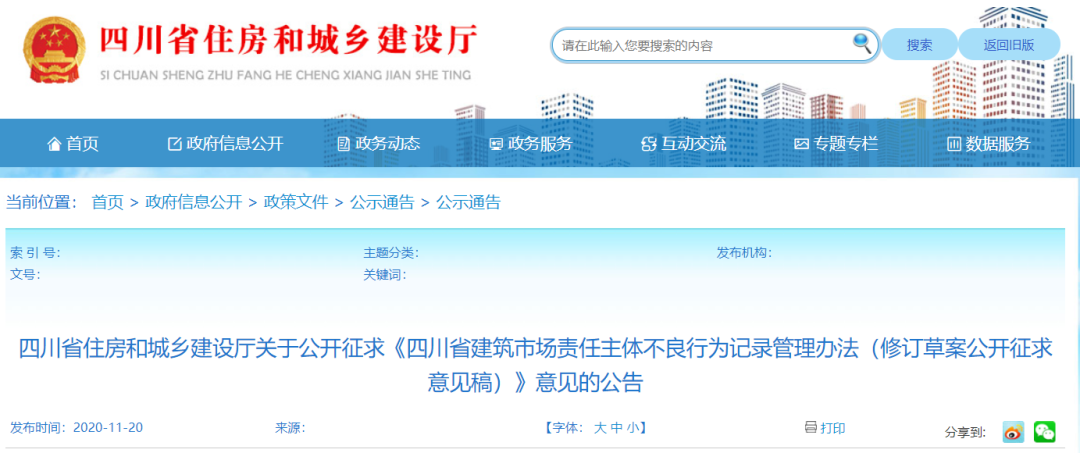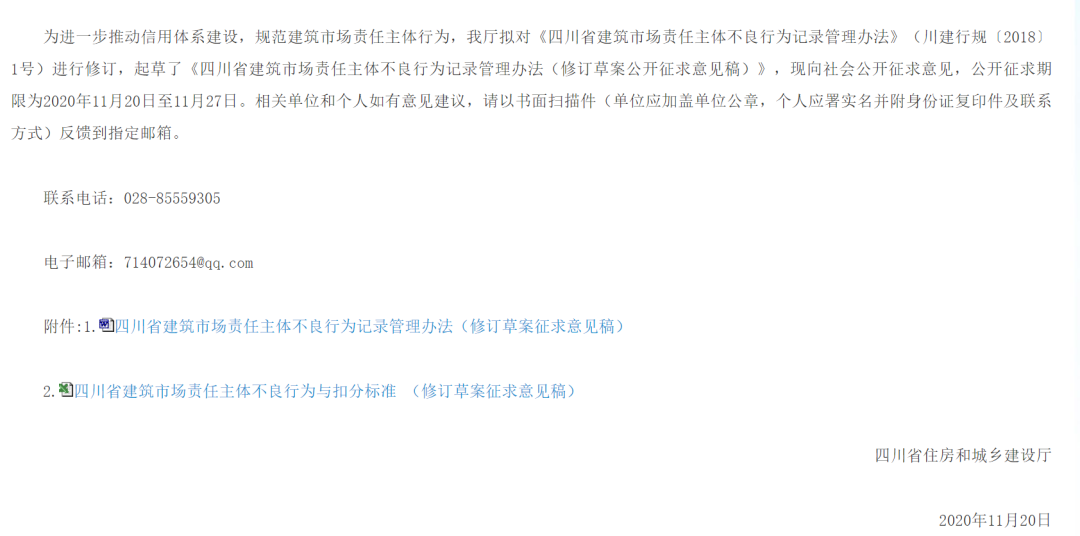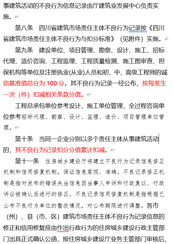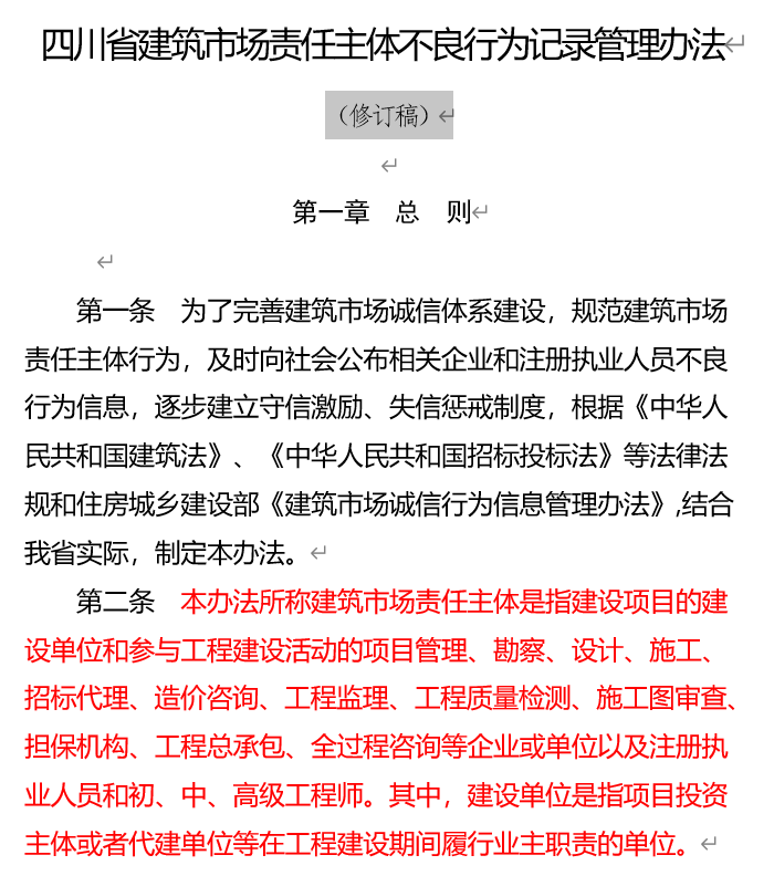 近日,四川省住建厅发布了关于《四川省建筑市场责任主体不良行为记录管理办法》的征求意见稿。