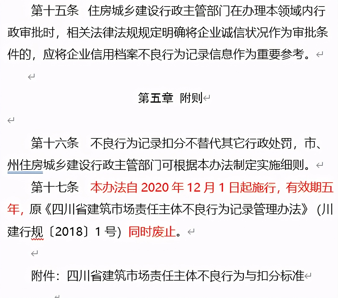 6. 本办法自2020年12月1日起施行,有效期五年,原《四川省建筑市场责任主体不良行为记录管理办法》(川建行规〔2018〕1号)同时废止。