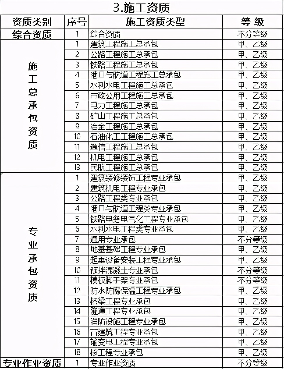 施工总承包资质、专业承包资质等级原则上压减为甲、乙两级(部分专业承包资质不分等级),其中,施工总承包甲级资质在本行业内承揽业务规模不受限制。