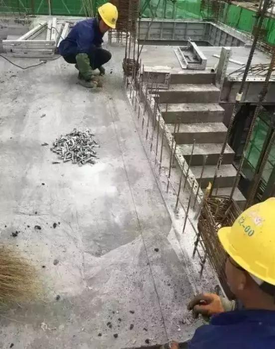 2、其中墙体、柱、剪力墙柱线要用彩色油漆、一般是红色油漆在墙柱边角做“三角形”标注,以利于筏板钢筋完成后墙柱钢筋主筋就位、摆放。