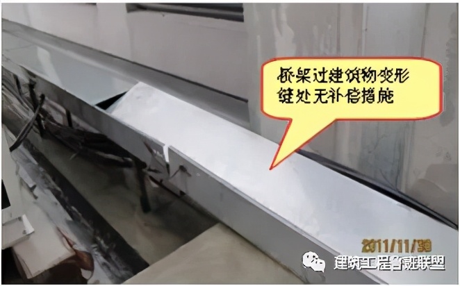 桥架直线段超过规定距离,建筑伸缩缝(沉降缝)未设置补偿装置