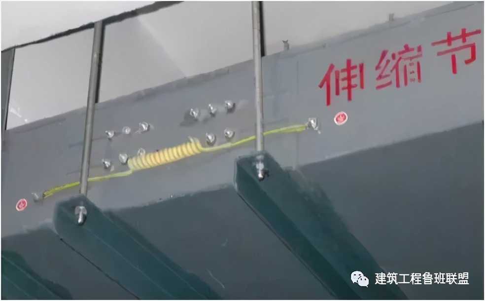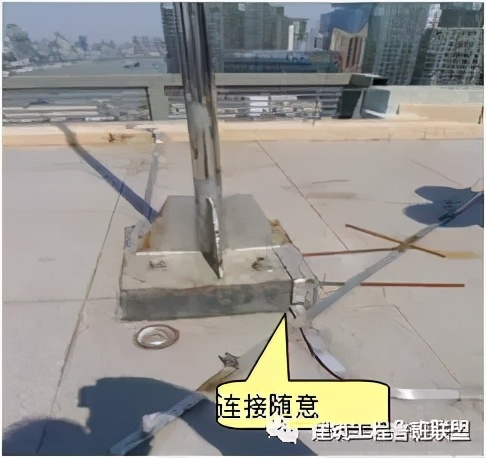 避雷带过伸缩缝(沉降缝)无补偿,引下线无标识