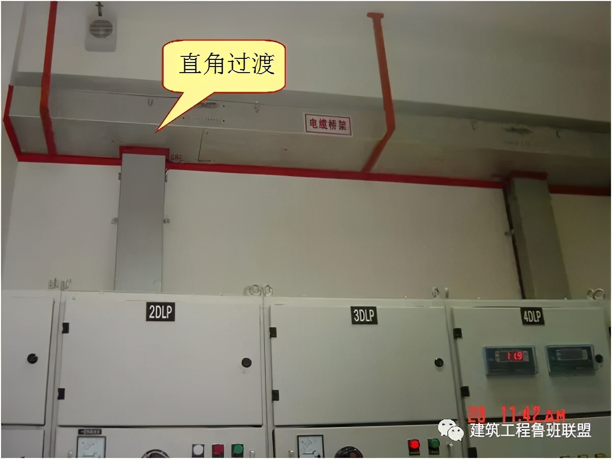 桥架的弯通、三通应满足经过该弯通或三通的电缆最小弯曲半径要求。而现场制作加工的弯通、三通都采用直角过渡,所以电缆的弯曲半径不能满足要求。