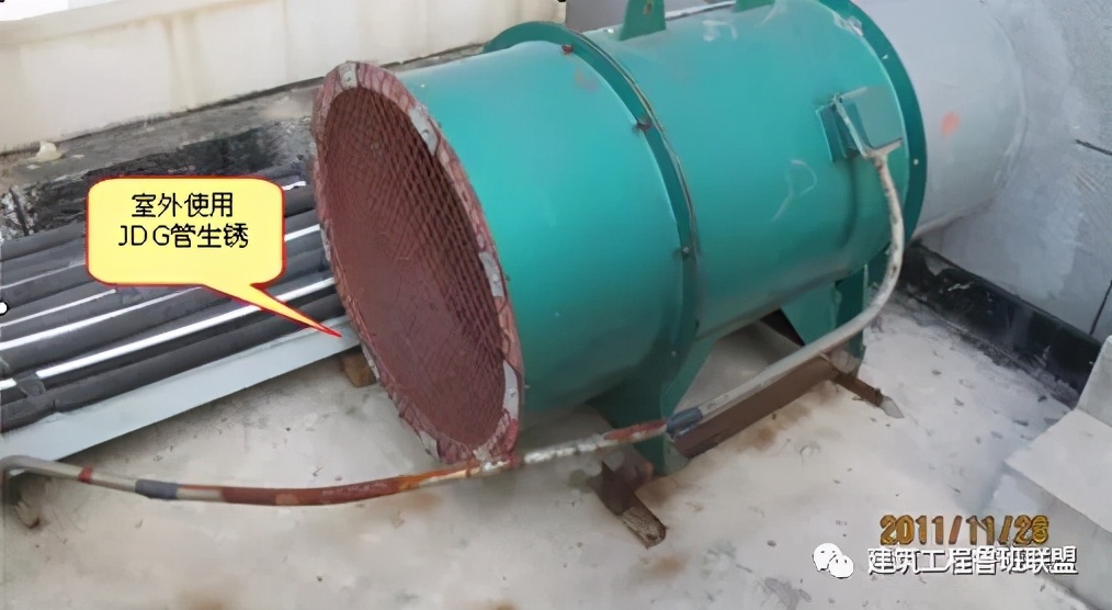 露天或潮湿场所,电气保护管采用JDG、KBG明配而导致腐蚀