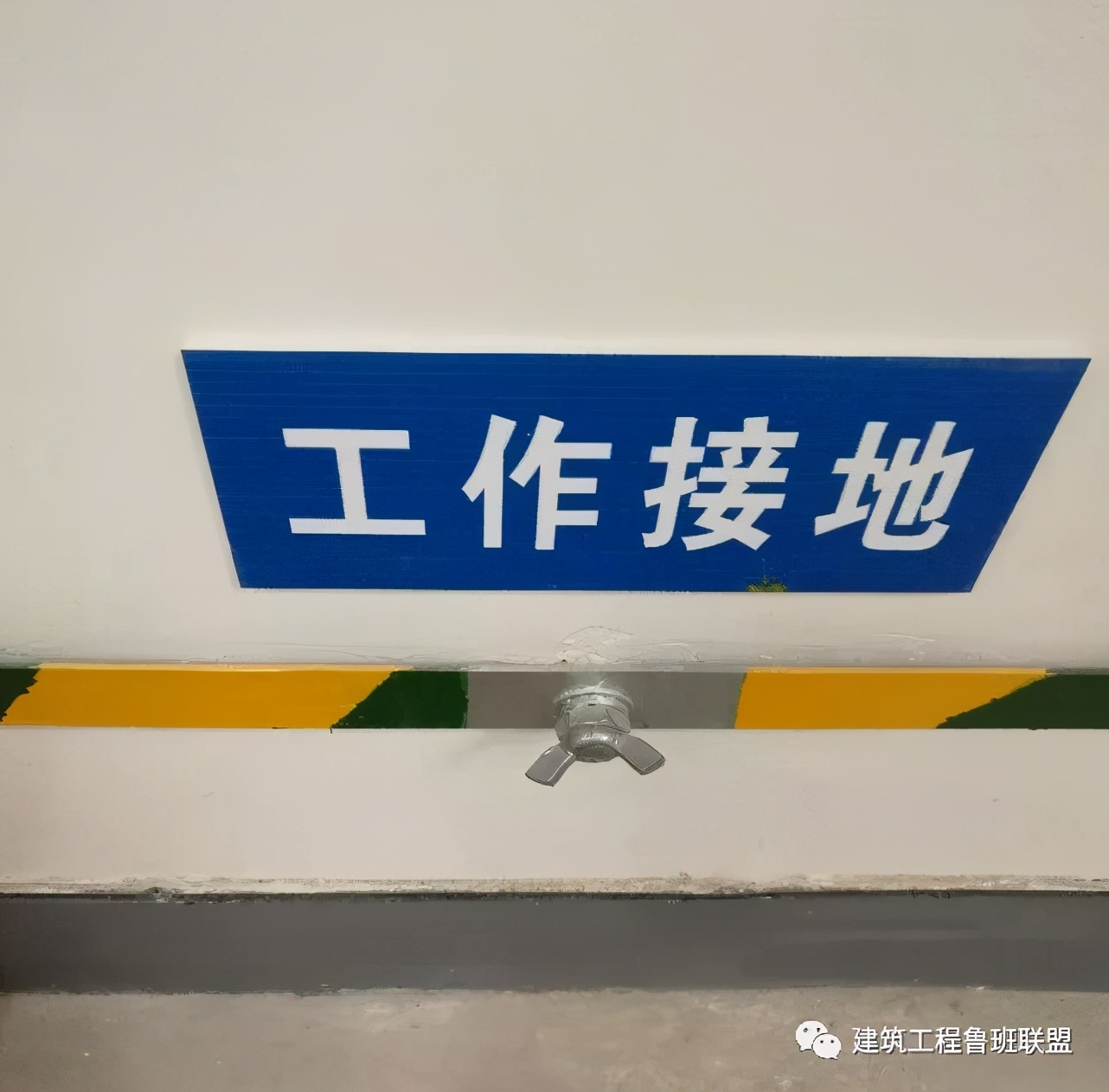 (3)在接地线引向建筑物的入口处和在检修用临时接地点处,均应刷白色底漆并标以黑色标识,其代号为“¤”。同一接地体不应出现两种不同的标识。
